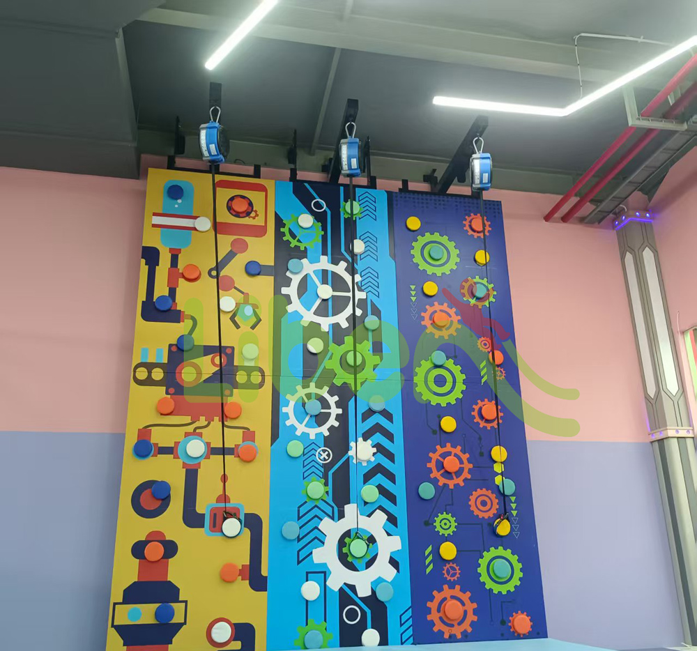 攀巖墻則是勇敢者的舞臺。不同難度級別的攀巖路線,搭配色彩鮮艷、形狀各異的巖點,激發著孩子們的挑戰欲望。他們手腳并用,努力向上攀登,每一次艱難的攀爬、每一次成功的登頂,都讓孩子們收獲滿滿的成就感,同時也鍛煉了力量與毅力。