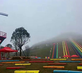 旱地滑雪項目利用物理重力滑行原理,借助于雪圈游客坐在雪圈上即可自然下滑,滑行過程中可根據(jù)天氣借助于水或洗潔精等潤滑劑進行速度調(diào)節(jié)和設(shè)備保養(yǎng)。滑行過程中不需要電力等其他動力源