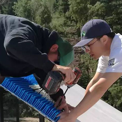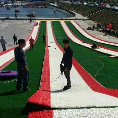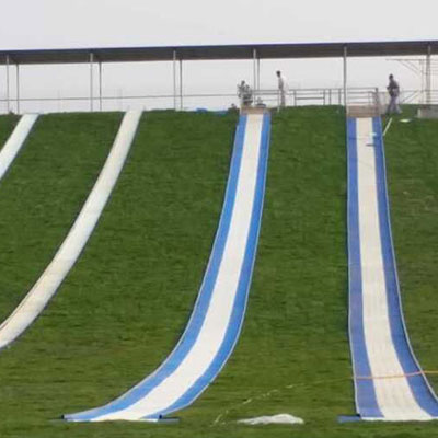 再技術(shù)人員的指導下進行旱雪滑塊的鋪裝工作,鋪裝完成后進行載人試滑十次,使滑行可達到預定位置范圍