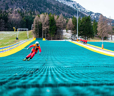 氣溫低于-10攝氏度以下時,需降雪覆蓋在旱雪毯表面滑真雪,如不進行降雪覆蓋,仍在旱雪毯上滑旱雪,會對旱雪毯造成損傷。