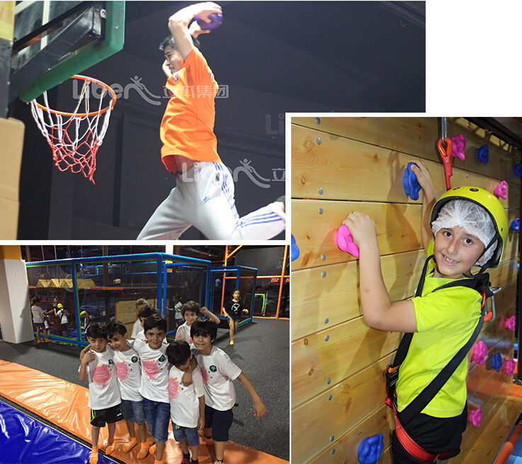 有自由 彈跳、躲避球、蜘蛛塔、專業(yè)蹦床、灌籃、攀巖、忍者空間闖關(guān) 等20多種不同區(qū)域,這些區(qū)域可根據(jù)客人要求設(shè)計蹦床公園效果圖