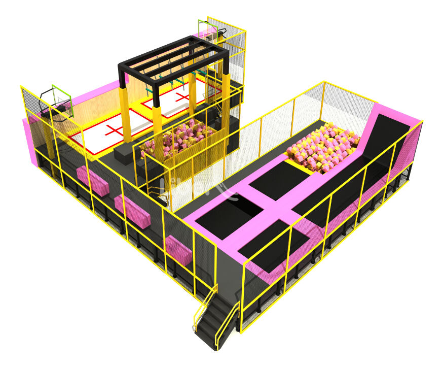 蹦床,根據不同的年齡可設計不同的功能區域,蹦床里可以