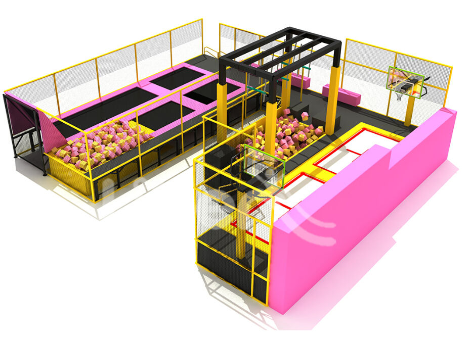 有自由 彈跳、躲避球、蜘蛛塔、專業蹦床、灌籃、攀巖者空間闖關 等20多種不同區域,這些區域可根據客人要求設計蹦床效 果圖