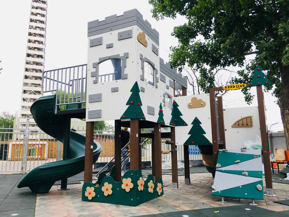 兒童組合滑梯由攀登模塊、平臺模塊和下滑模塊組成,一般采用木材、不銹鋼、人造水磨石、玻璃纖維、增強塑料制作,保證滑板表面光滑。滑梯在尺寸上要遵循人體工程學原理,與人體的高度配合,與兒童年齡和體型結合,才能有益于他們的健康成長。