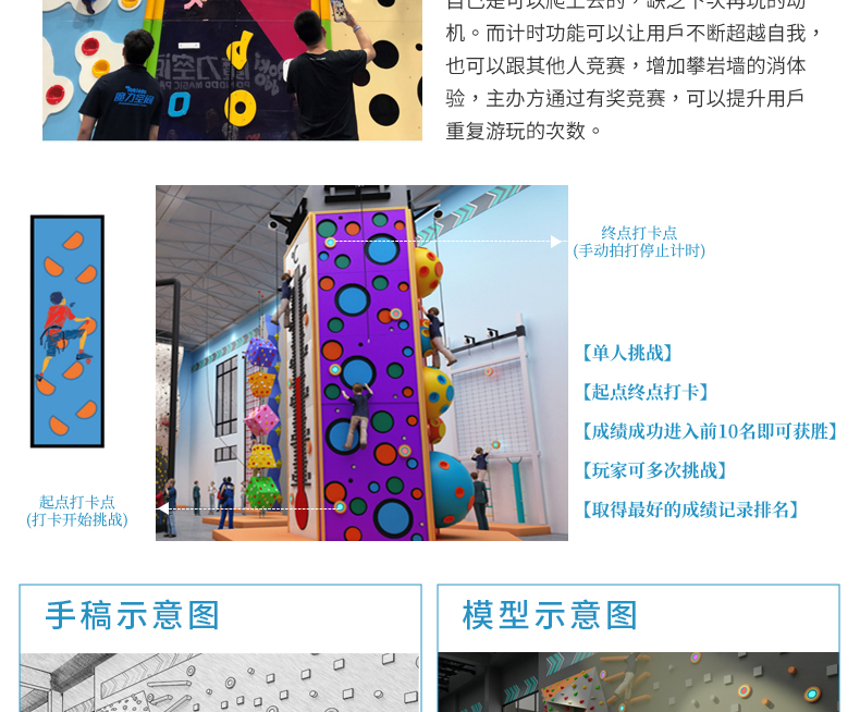 第二,從客觀上來說,室內攀巖是通過攀登人工設計高度、難度不等的巖壁來完成攀巖的體驗,就是說,巖壁上的巖點是可以隨意改變位置的,而隨著巖點的調整,攀爬線路的難度也會隨之調整。
